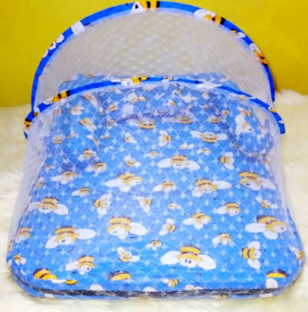 Harga Kasur Bayi Lipat Kelambu Set Baru Lahir Murah Bee Blue Bisa Bayar di Tempat / COD
