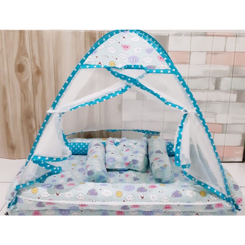 Kasur Kelambu Bayi Set Bantal Guling PREMIUM / Kasur Lipat Kelambu Bayi / Kasur Kelambu Murah